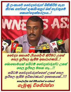 පලි- සෞඛ්ය සේවය තමන්ගේ ගැටලුව ඇත්ත ඇති හැටියට දැක එකමුතු වී ජය ගැනීම පසෙක දමා වෙනත් අය කුලප්පු කර තමන්ගේ ජාම බේරාගන්නා අයගෙන් පිරී ඇති නිසා ඉහත දැක්වෙන අන්දමේ ප්රකාශ තවදුරටත් දැකිය හැකි වෙනු ඇත.